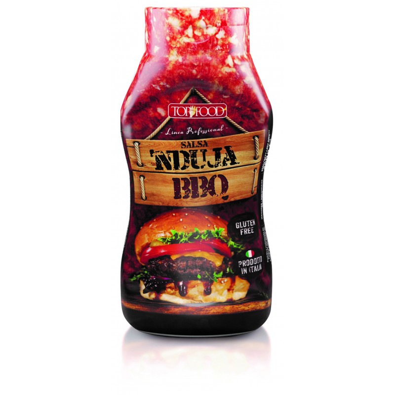 La salsa BBQ N'duja (sobrasada) Top Food de 550 g es una mezcla audaz que combina el sabor ahumado de la barbacoa con el toque picante y cremoso de la N'duja, un embutido italiano. Ideal para carnes a la parrilla, hamburguesas o como dip, su sabor único y especiado le aportará un toque especial a tus comidas. Su formato de 550 g es perfecto para compartir en reuniones y eventos.